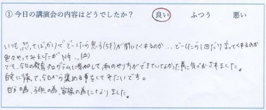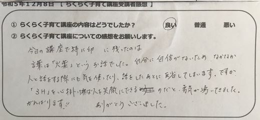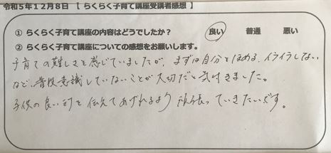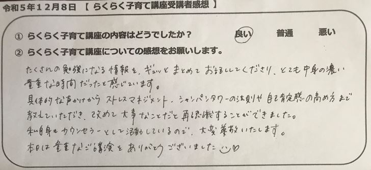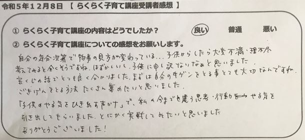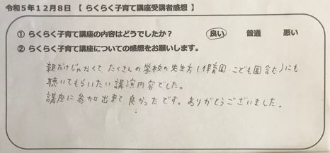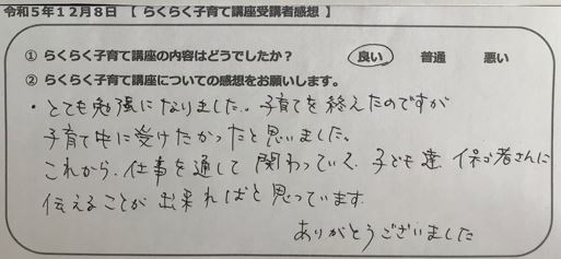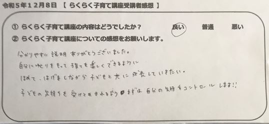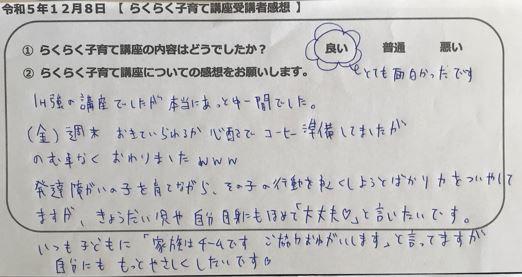 らくらく子育て講座受講者の声
