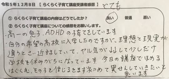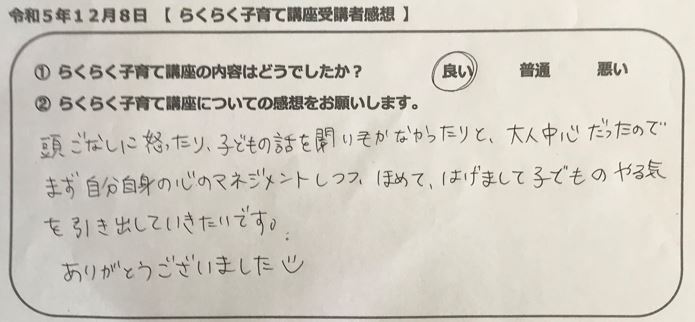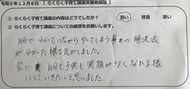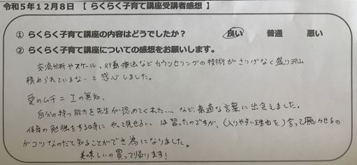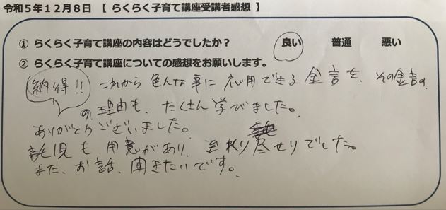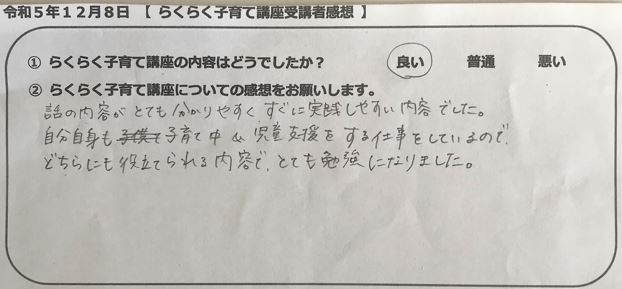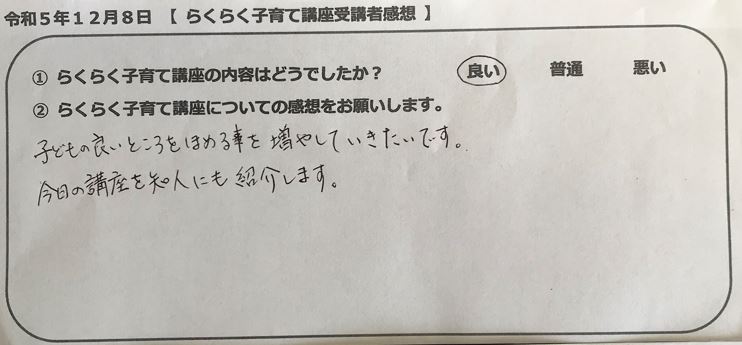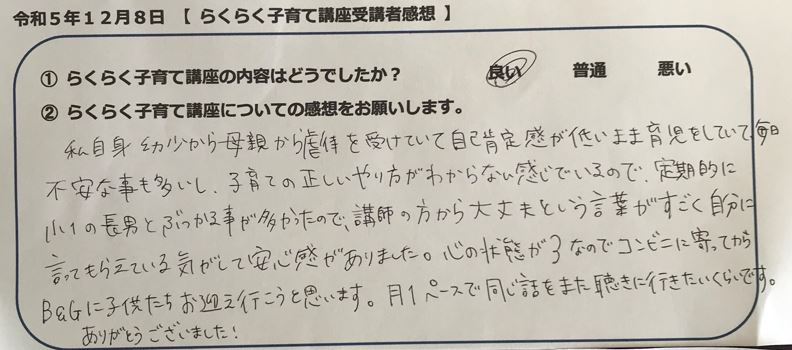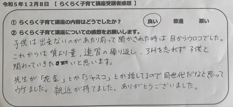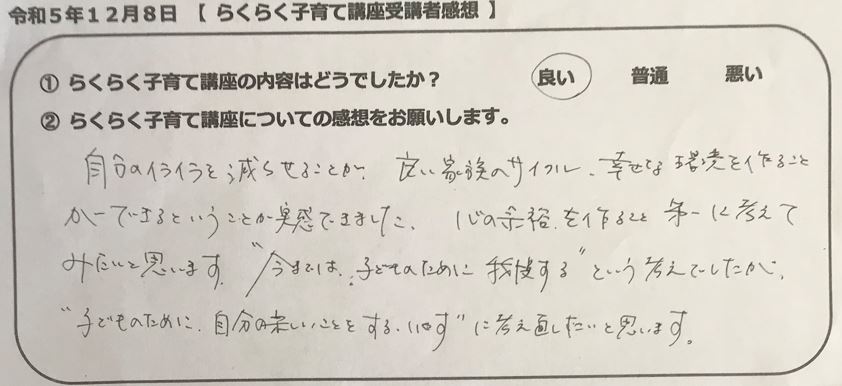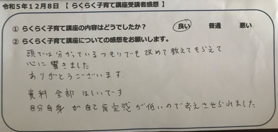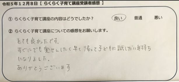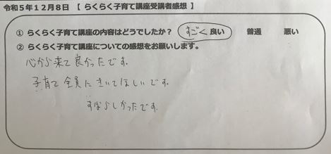 らくらく子育て講座受講者の声